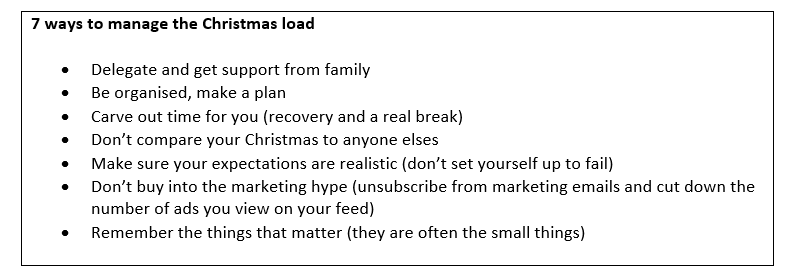 We talk a lot about the mental load or the invisible load and I think women are great at making this look so easy it often appears invisible. Families don’t see the workload that goes into making Christmas great, not to mention the careful balance of all the family dynamics and relationships across a festive period marinated in booze!