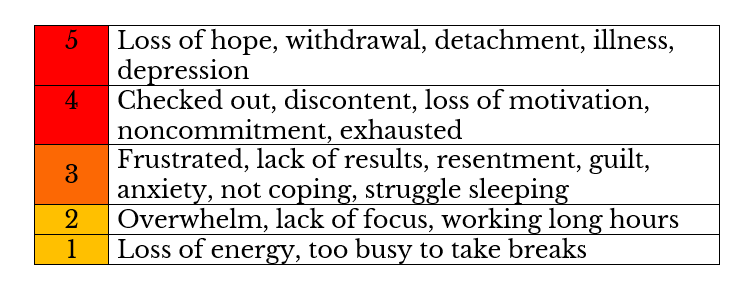 The most common indicators burnout is at play are; exhaustion, a feeling of lack of control, disengaging, trouble focusing, a sense of dread about work and frequent feelings of cynicism or irritability.