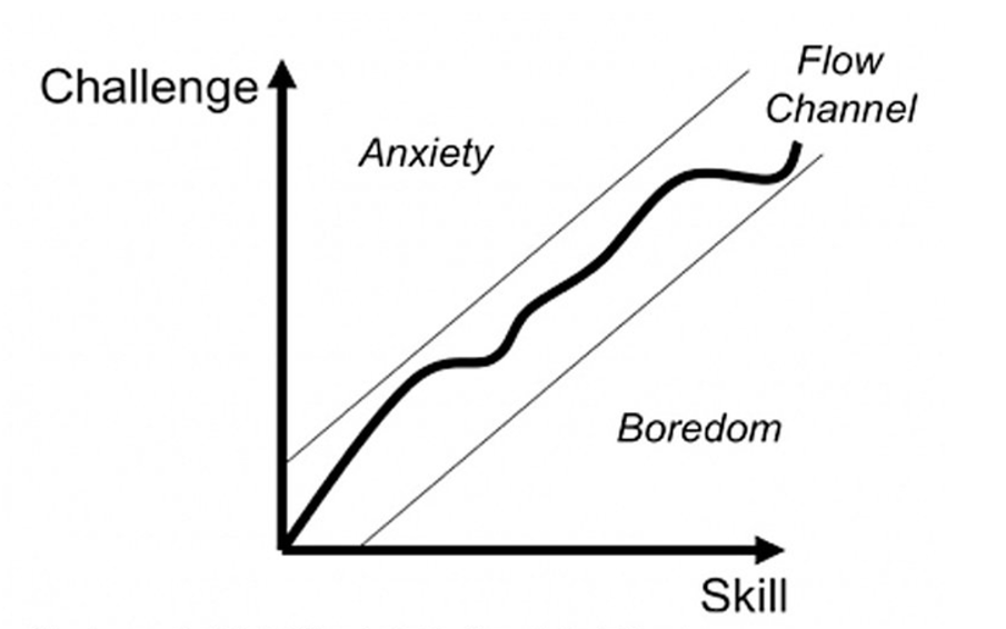 Research by flow guru Mihaly Csikszentmihalyi tells us to create flow, an activity must stretch our potential enough to have an even balance between how challenging the activity feels for us, and our level of skill to complete the activity. It is known as the challenge to skill ratio.